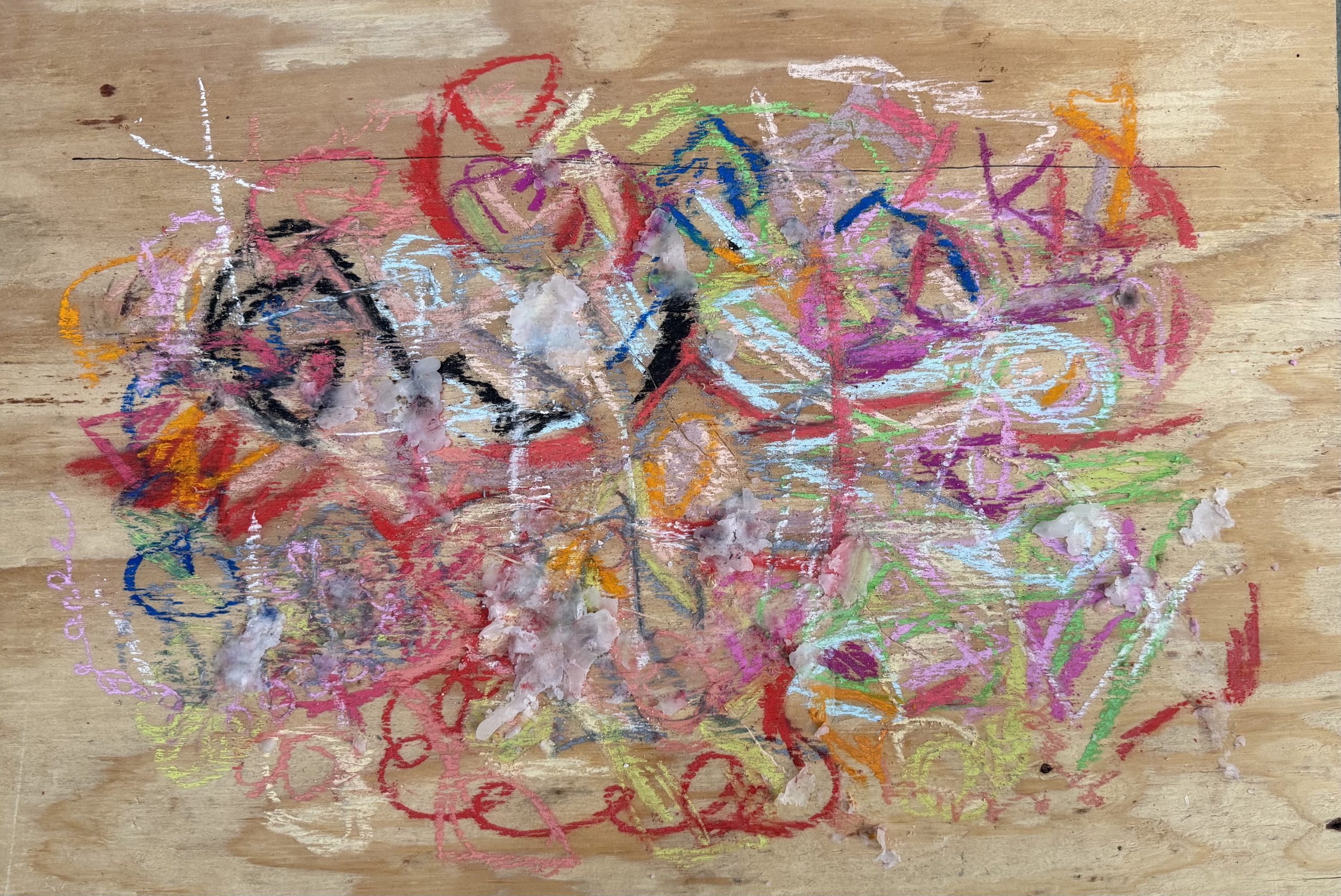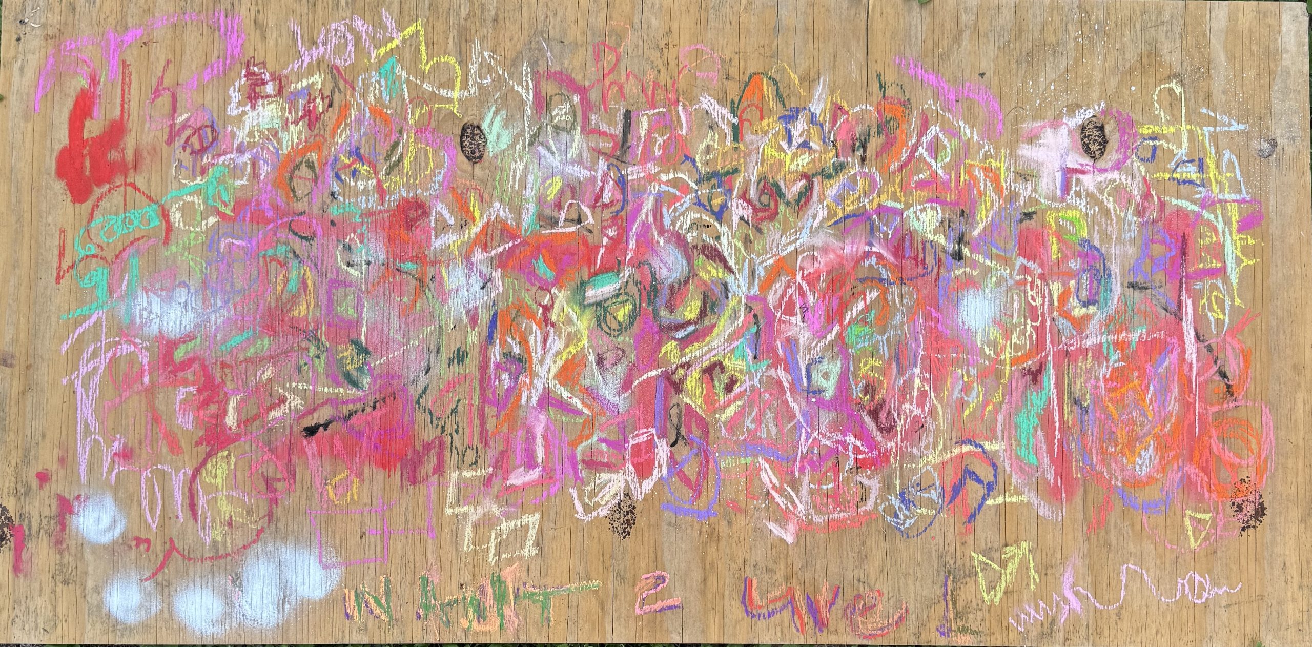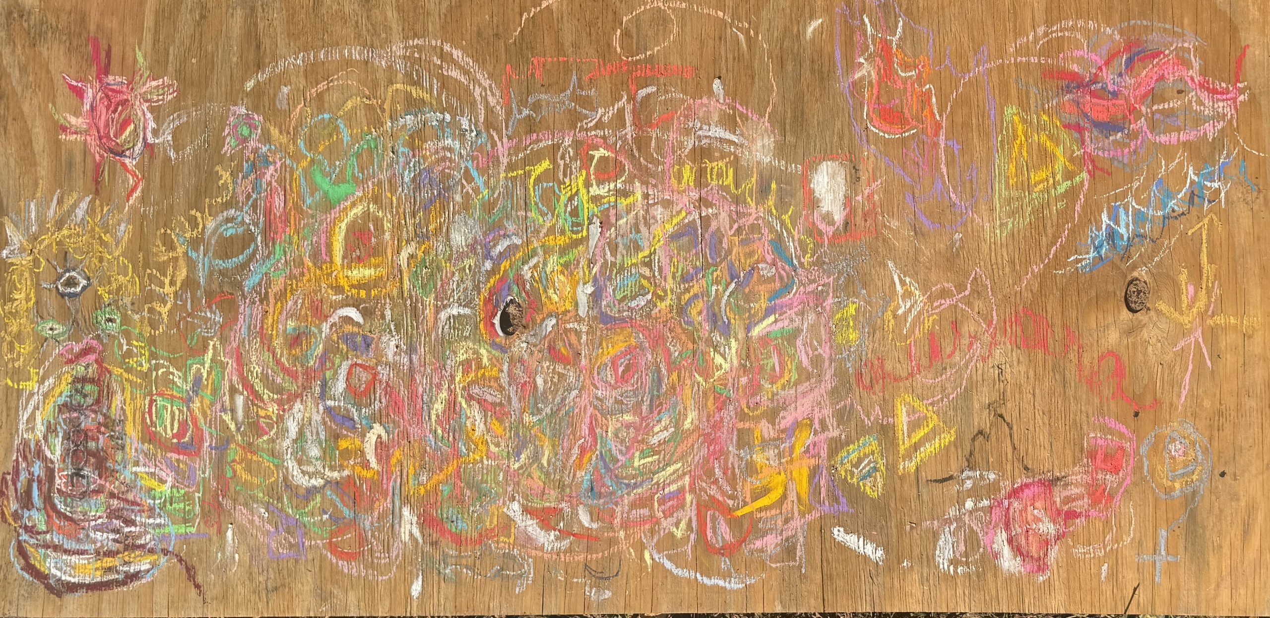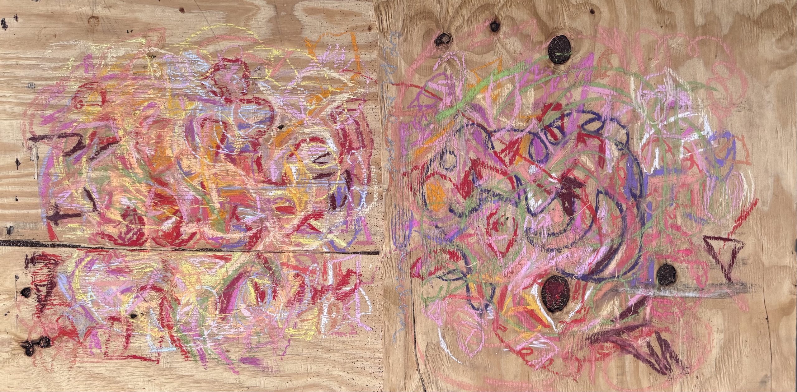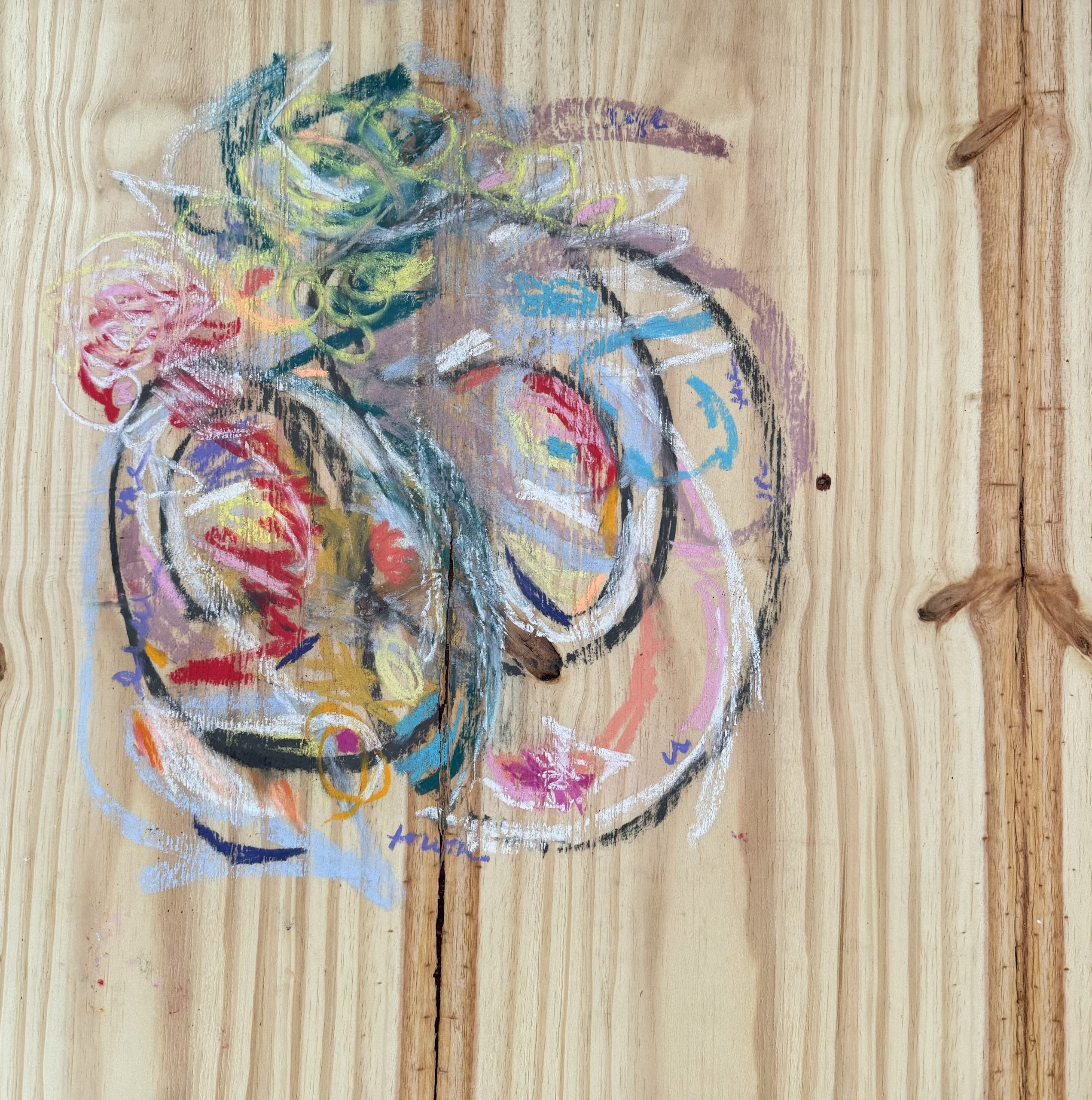 i channel auras and emotions manifesting as visual poems. the energy. of a person. a connection. an experience. the way someone makes me feel. a lot of times a lover. i grab a piece of wood, turn my music library on shuffle and let the universe be my dj. i get my booty grooving. sing (very) off key. swirl my hand over the pastels, letting my intuition grab what feels right. palo santo, spray paint, acrylics, wax and glue are other elements i like to use. i (try to) infuse each piece with energy of love and joy. sometimes it’s lust (creation energy). definitely varnish. i like the juxtaposition of delicate lines, the fragility of pastels with the toughness of wood. the masculine and the feminine in harmony